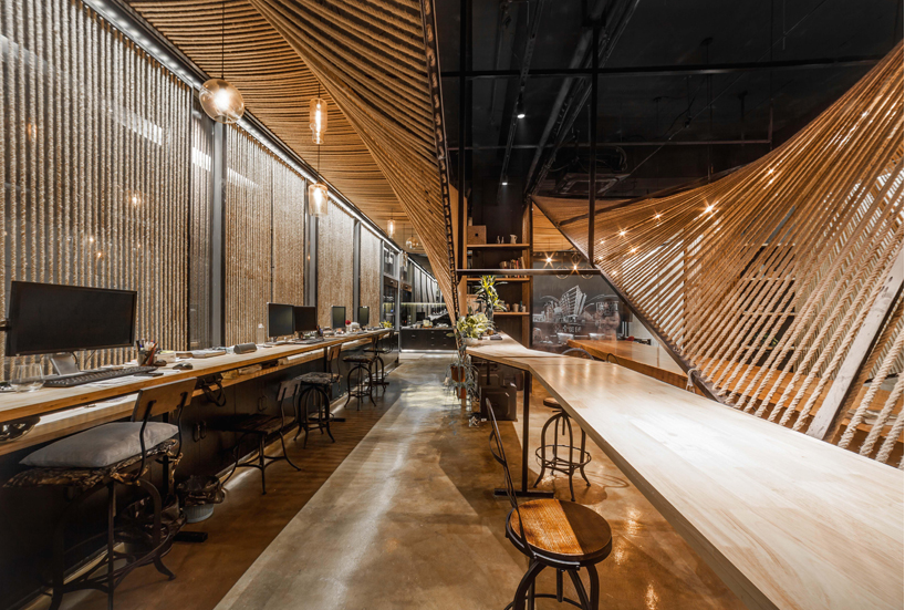 “繩索辦公室”使用的大部分辦公室裝修材料都是天然資源,如繩索、鋼材和木材,價格低廉,環保。為了突出繩索材料的可能性和自然美,合作的辦公室裝修機構都以波浪繩為主要設計理念。